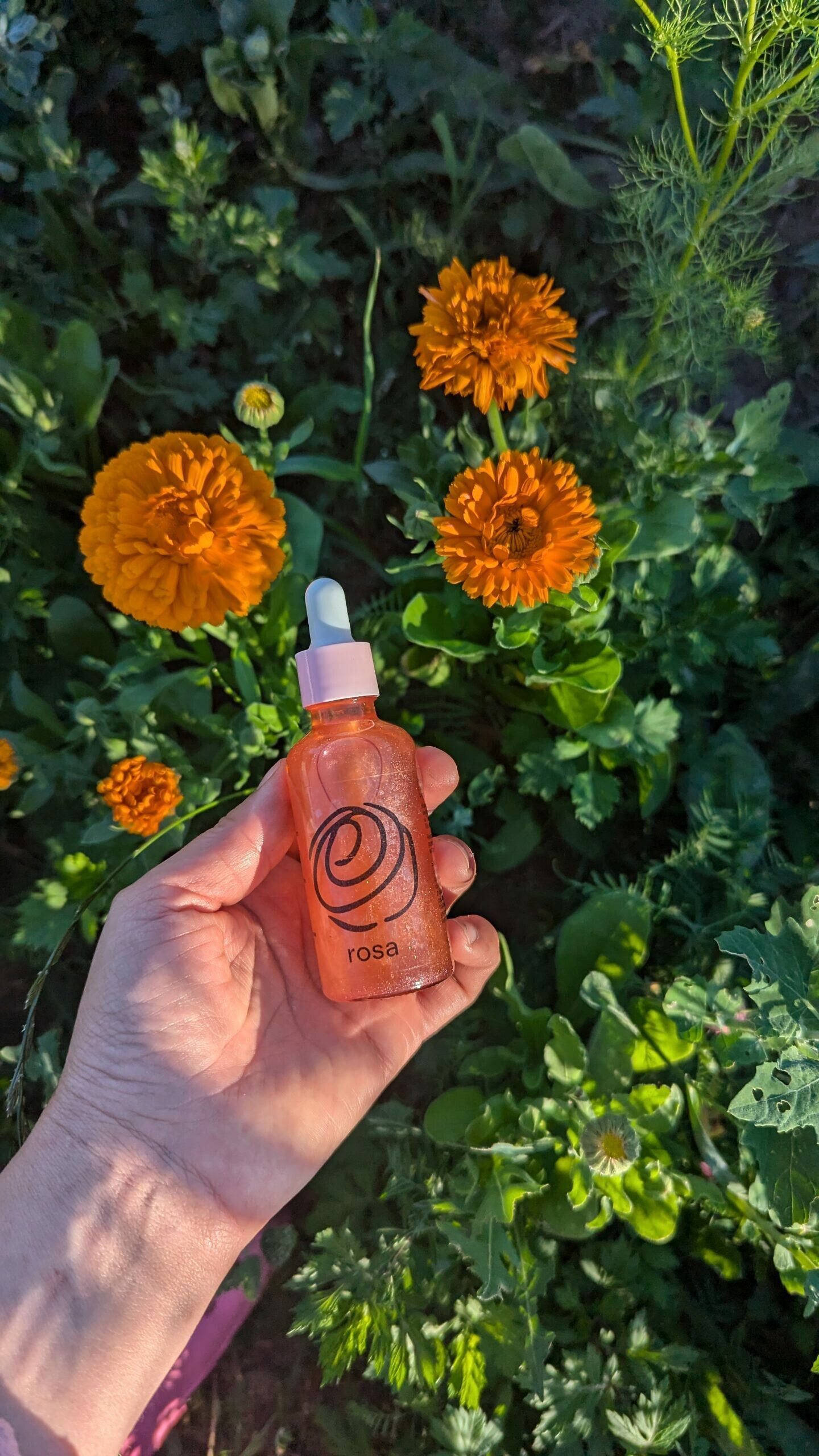 Spaceruj po mokrej od wczesności poranku łące przytulonej do ściany brzoźniaka w którym tulą się w zakamarkach krzewinki dzikiej róży.  Jej aromatyczne płatki są sercem całego olejku. Zanurzone w glicerycie są podarunkiem dla was dostojnej róży rosnącej niedaleko mojego domu. W zakamarkach spotkasz również pąki topoli, kwiaty kasztanowca jak i żywice modrzewiową.