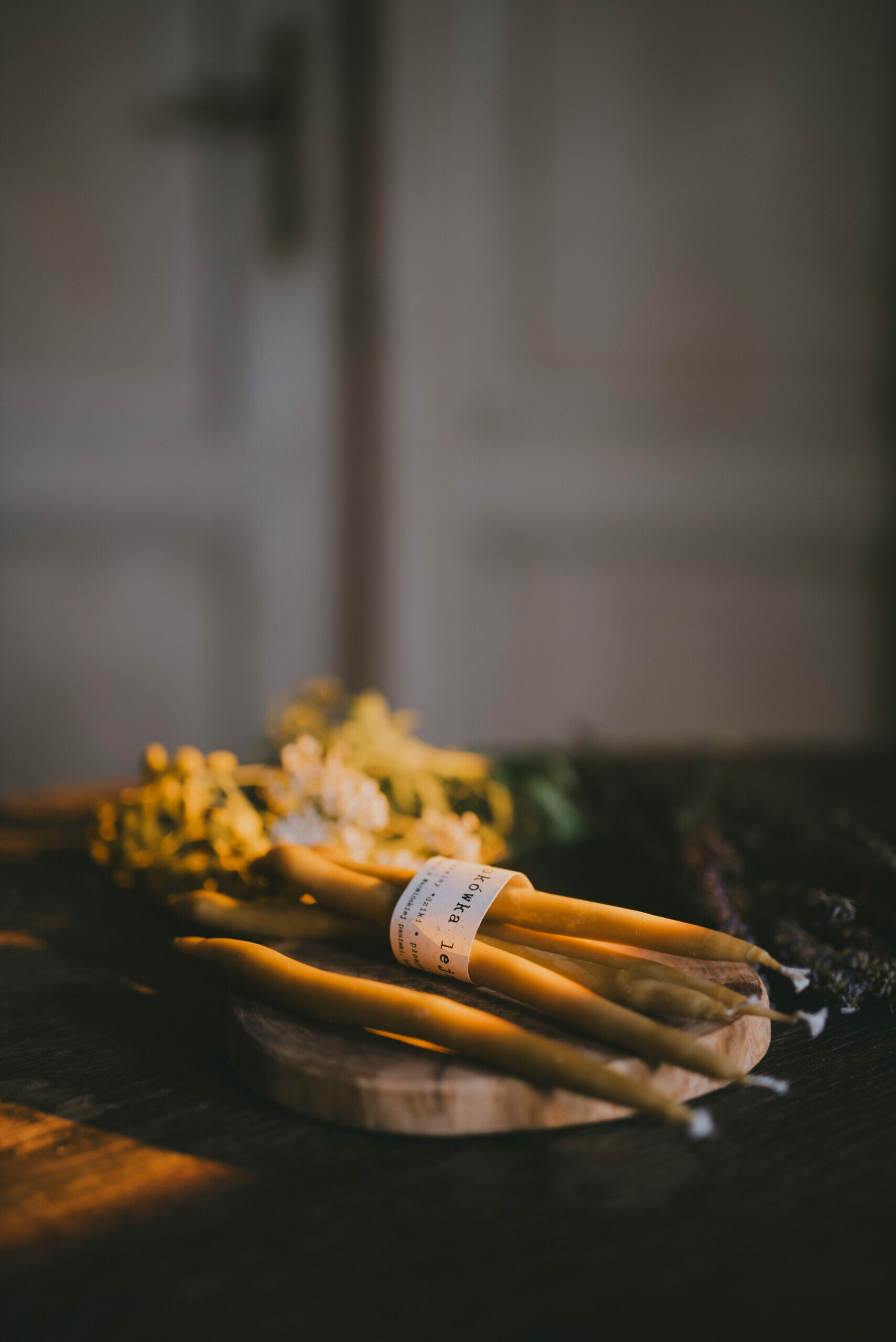 5 ręcznie lanych świec z warmińskiego wosku pszczelego z naszej pasieki i knotem lnianym z polskiego lnu – nie bawełny!